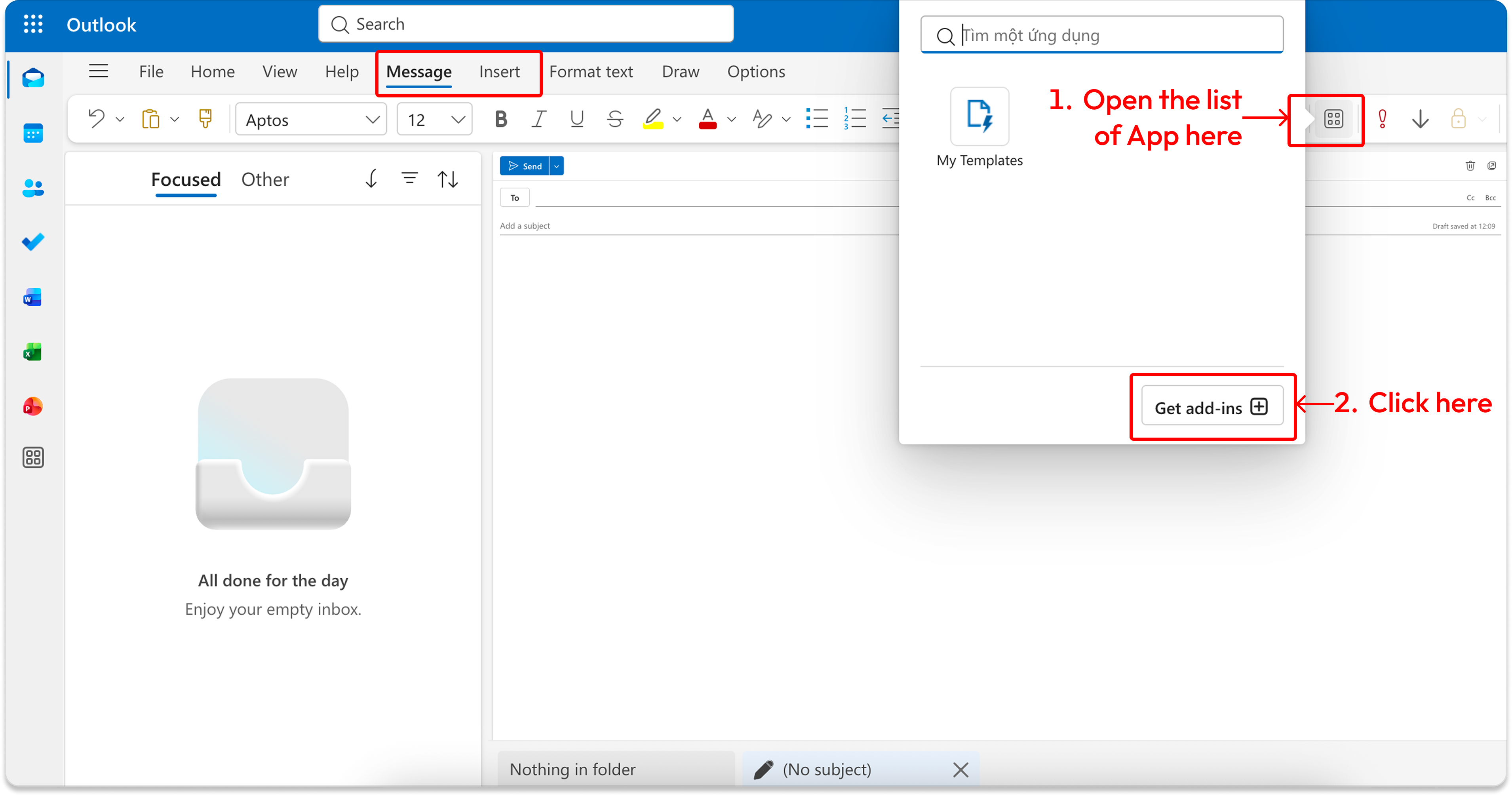 2. In the toolbar, go to the **Message** tab or **Insert** tab.