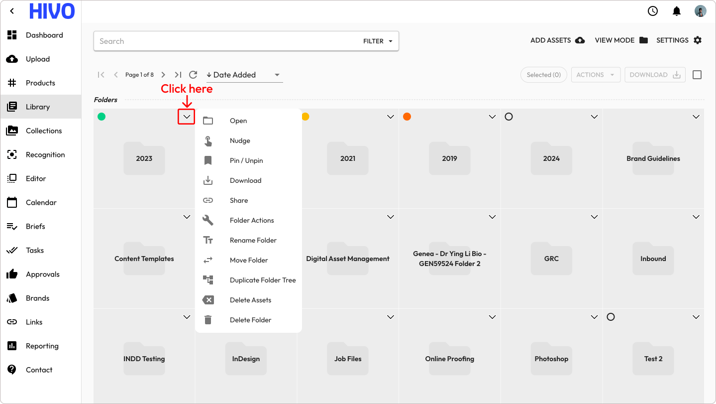 HIVO equips you to organize your digital assets efficiently with its folder management functionalities. This guide explores how to access folder settings, perform actions on entire folders, and maintain a well-structured library.